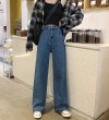 2022年秋季高腰牛仔裤女式大码宽松阔腿长裤,适合丰满女孩,修身垂坠拖把直筒裤