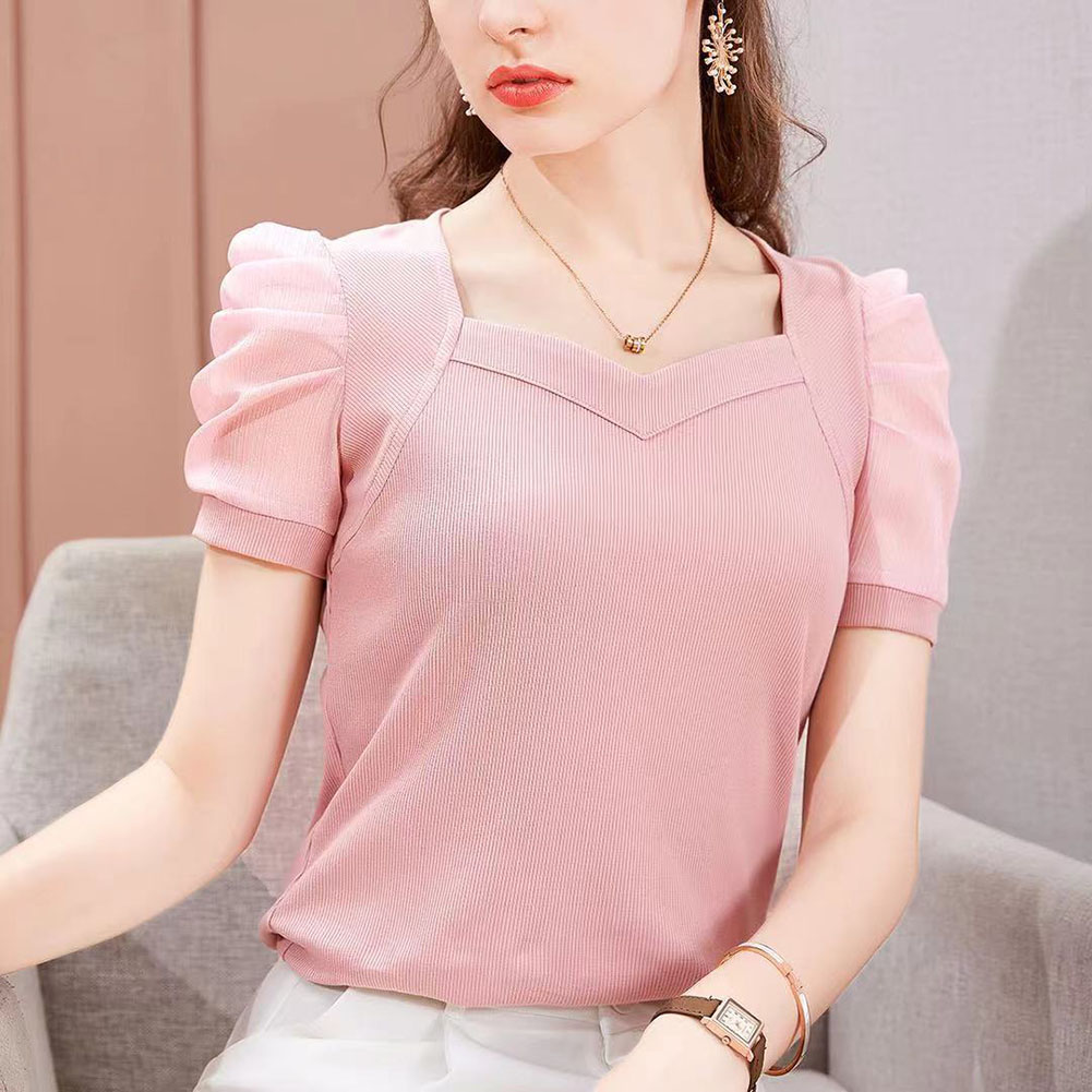 Name: Women Ice Silk Puff Short Sleeve Shirt