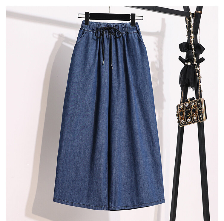 Plus Size Elastic Waist Thin Casual Summer 7 Points Denim Capri Pants Cropped Jeans for Women S M L XL XXL XXXL 4XL 5XL