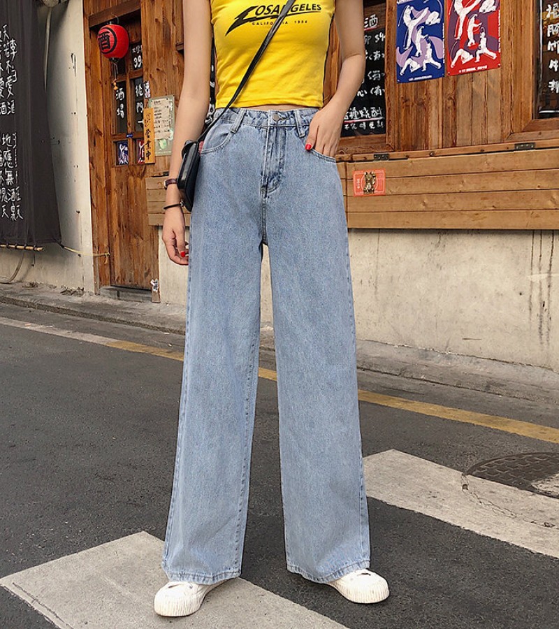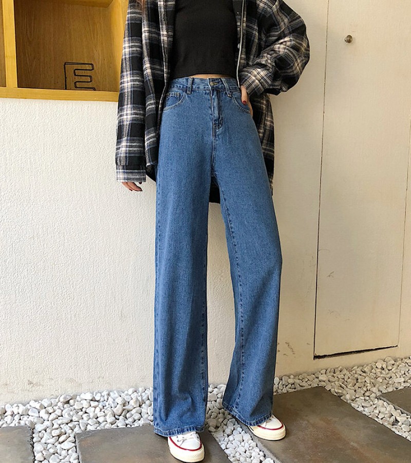 2022年秋季高腰牛仔裤女式大码宽松阔腿长裤,适合丰满女孩,修身垂坠拖把直筒裤