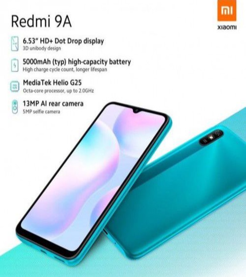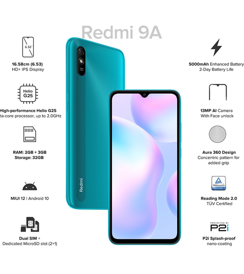 Xiaomi Redmi 9AImmersive 6.53" HD+ Display Low Blue Light For a Comfortable Viewing Experience Massive 5000mAh Battery High-performance Helio G25