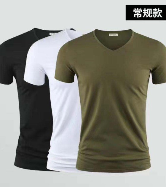 3vyy新款时尚短袖纯色男式V领半内衣内衣T恤衫体袖冰丝身体修复T恤1/