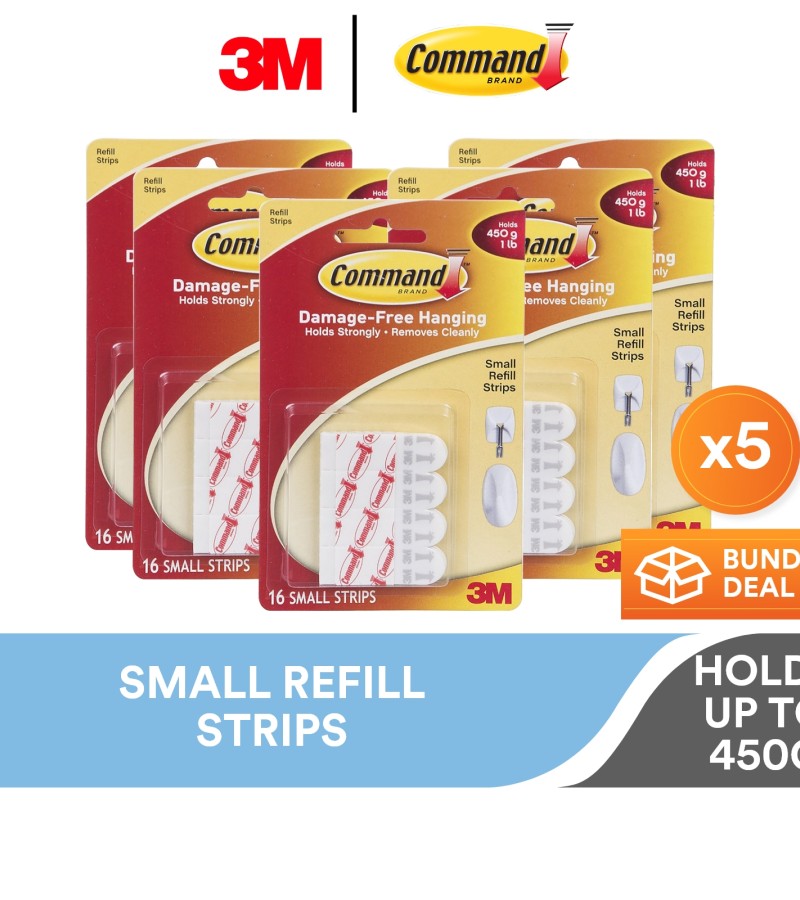 3M Command白色小型填充条,17022P,16/包,最多可容纳450克,无损伤,坚固耐用