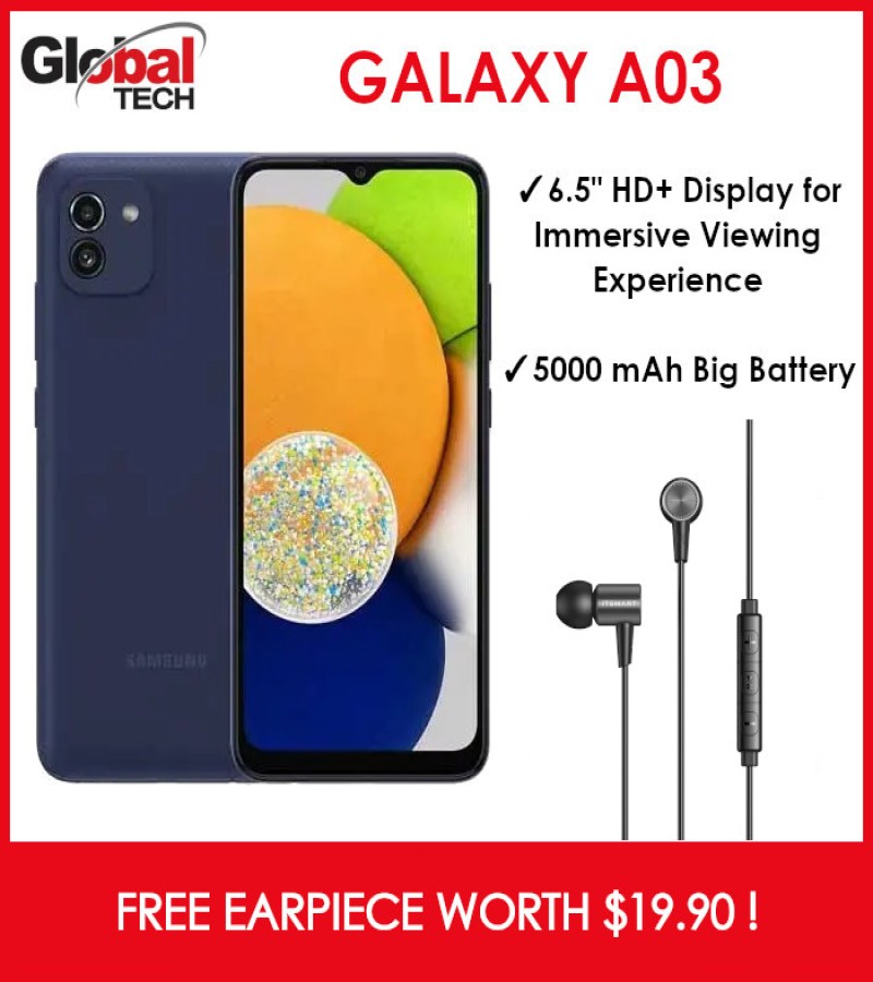 三星Galaxy A03 64GB存储空间(免费耳机)