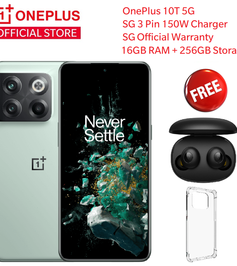 OnePlus 10T 5G SG本地套件| SG 2年保修| Snapdragon 8+Gen 1 | SG 3针150W充电器|免费保护壳和耳机