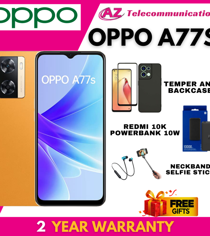 - FREE GIFT 2 : TEMPERGLASS, BACKCASE, REDMI 10K POWERBANK, SANDISK DUAL DRIVE TYPE C 32GB **OPPO A77S 8/128GB (2YEARS OPPO OFFICAIL WARRANTY)**