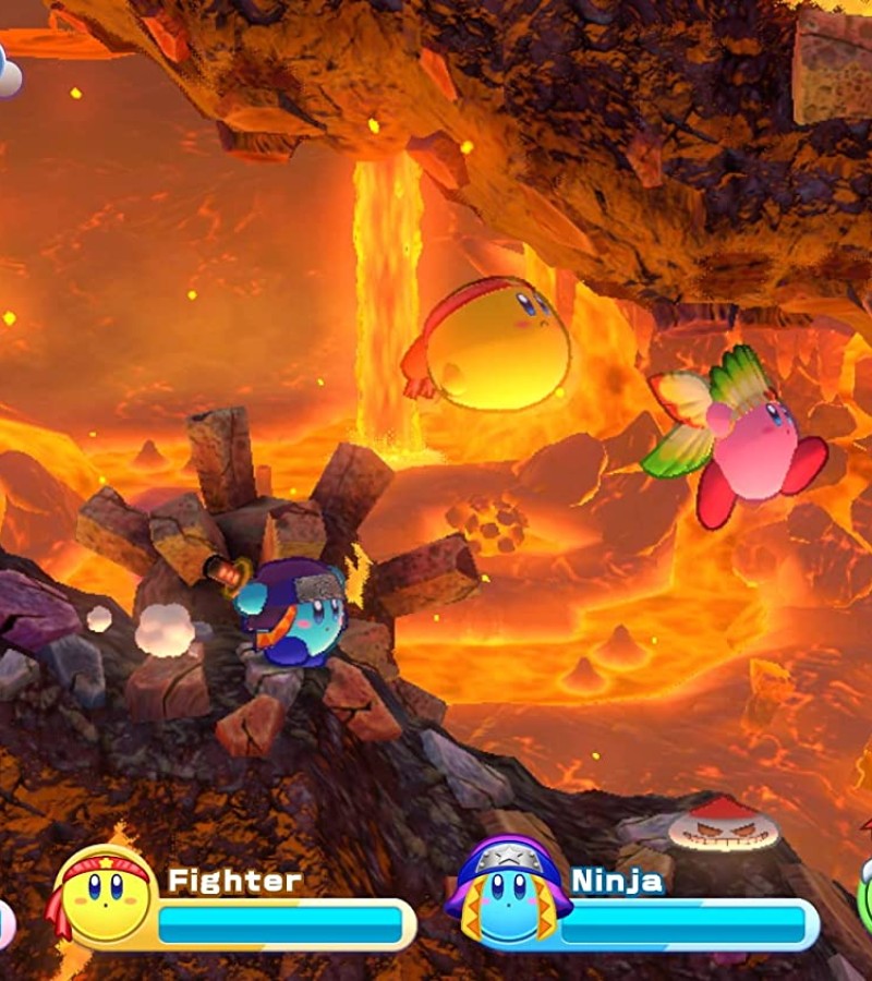 The tough puff Kirby is back for a 4-player* platforming adventure. Copy enemies’ abilities and use their power to attack with a sword, wield a whip, and float with a parasol. You can also laser blast with the new Mecha Copy Ability that makes a series debut! The extra muscle will be handy in finding missing pieces for Magolor’s ship, which crash landed on Planet Popstar. Float and fight along with friends on the same system, where each player can control another Kirby or one of Kirby’s iconic friends like King Dedede, Meta Knight, and Bandana Waddle Dee.
