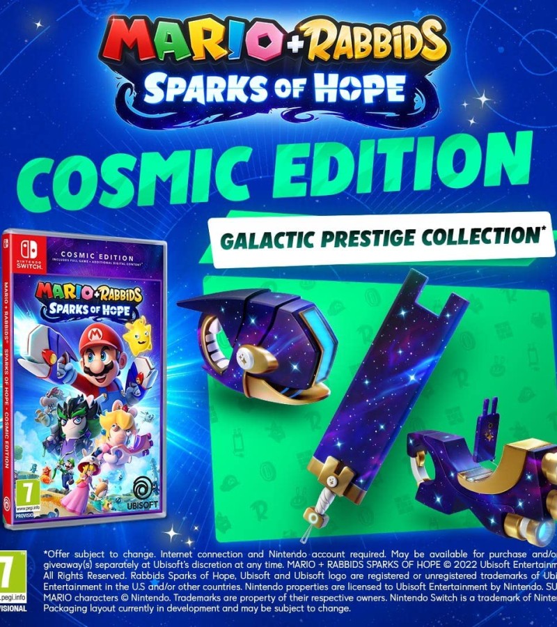 Team up with Mario, Luigi, Princess Peach, Rabbid Peach, Rabbid Luigi, and their friends on a galactic journey to defeat a malevolent entity and save your Spark companions. Explore planets throughout the galaxy as you uncover mysterious secrets and compelling quests!