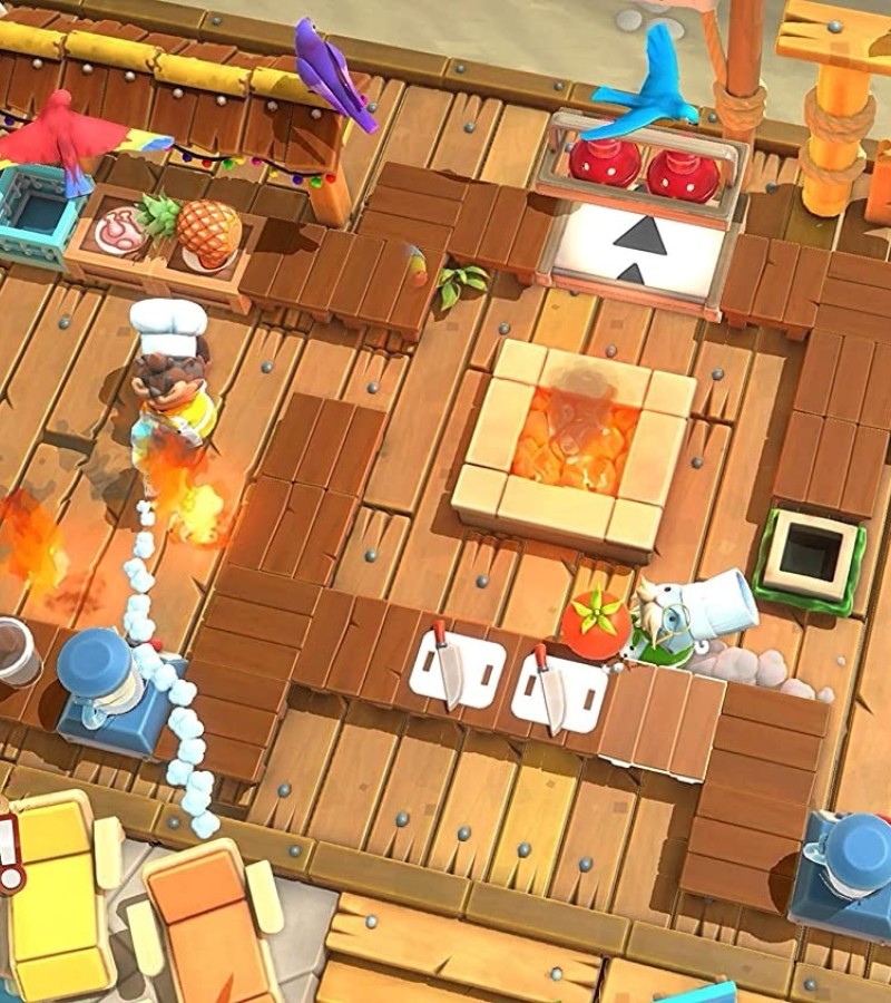 Overcooked 2 is a chaotic co-op cooking game for 1-4 players in which you must serve a variety of recipes including sushi, pasta, cakes, burgers, and burritos to hungry customers in a series of unconventional kitchens. Whether it be a hot air balloon, a magical Wizard’s school, or even another planet, you’ll have to be ready for anything. Work solo or with up to three friends to prep orders while overcoming obstacles such as fire, collapsing floors, overbearing waiters, and of course, the classic kitchen problem of floating work surface.