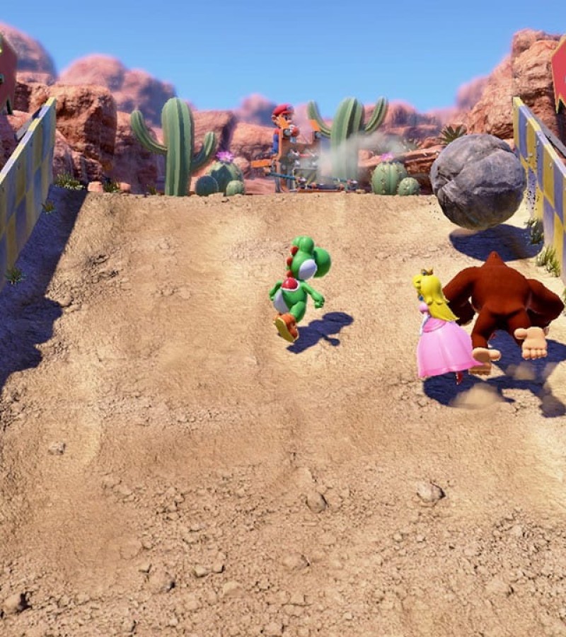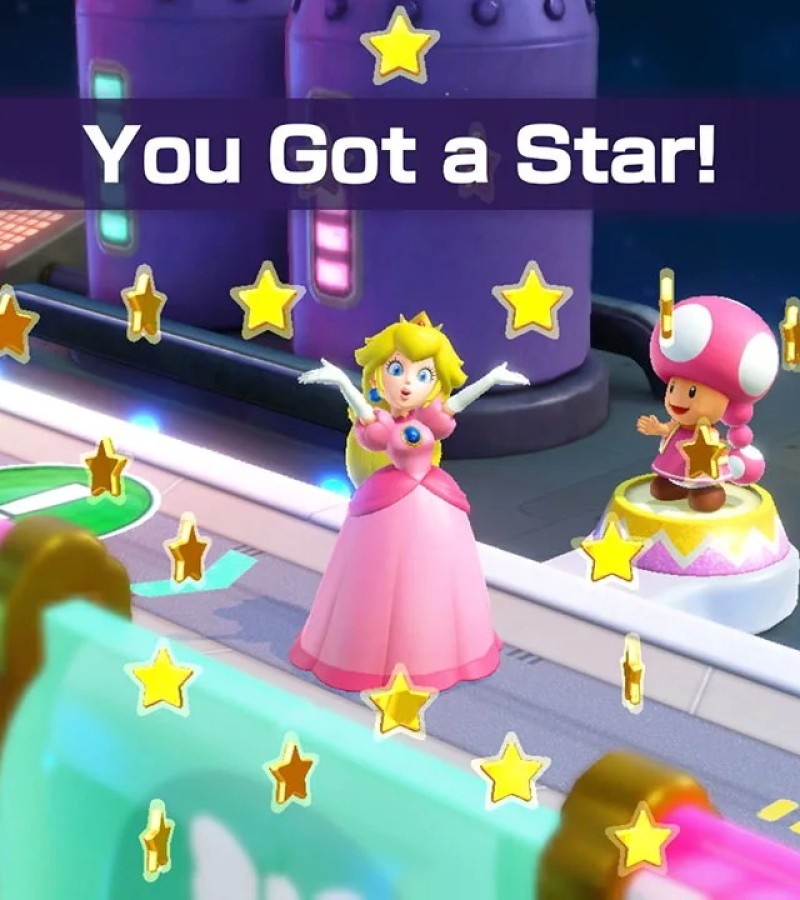 Calling all Superstars! Mario Party™ is back with 5 classic boards from the Nintendo 64 Mario Party games. Frosting meets flowers as you race to get the most stars (and sabotage your opponents) on the Peach’s Birthday Cake board from the original Mario Party game. Or watch the countdown that unleashes Bowser Coin Beam and hold onto those coins on the Space Land board. The tides can turn quickly in Mario Party, so stay vigilant, partygoers. 100 classic minigames return from the Nintendo 64 and Nintendo GameCube™ games and more! Try your hand at a Superstar collection of minigames from throughout the Mario Party series. Whether you are saving up coins for stars in board game mode or practicing in free play, there is nothing quite like being the last one standing in Mushroom Mix-Up or Shy Guy Says. All minigames are played with button controls, so you can stick to the Joy-Con™ controller or bust out the Nintendo Switch™ Pro Controller or a Nintendo Switch Lite system. Party with superstars. Bring the party anytime, anywhere with same-system* or local wireless*. Matches with friends in board game mode save each turn, so feel free to take a break and pick up where you left off. Use stickers to praise or pester fellow players as you race across the board collecting stars.