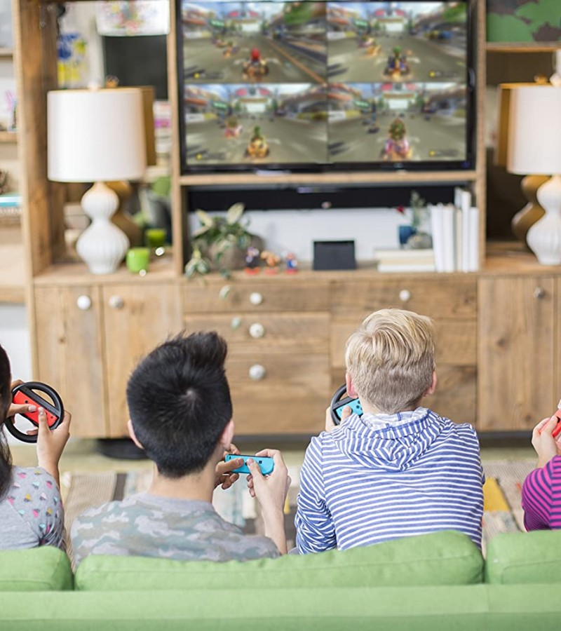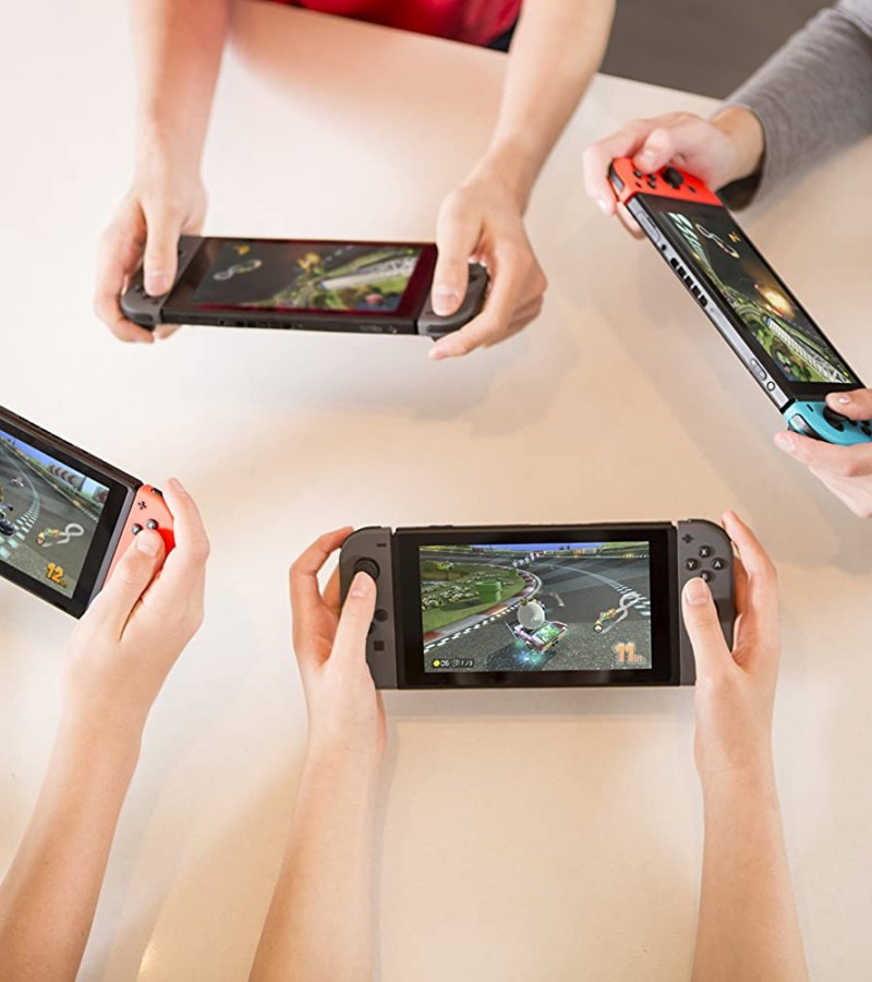 Hit the road with the definitive version of Mario Kart 8 and play anytime, any-where! Race your friends or battle them in a revised battle mode on new and returning battle courses. Play locally in up to 4-player multiplayer in 1080p while playing in TV Mode. Every track from the Wii U version, including DLC, makes a glorious return. Plus, the Inklings appear as all-new guest characters, along with returning favorites, such as King Boo, Dry Bones, and Bowser Jr.!