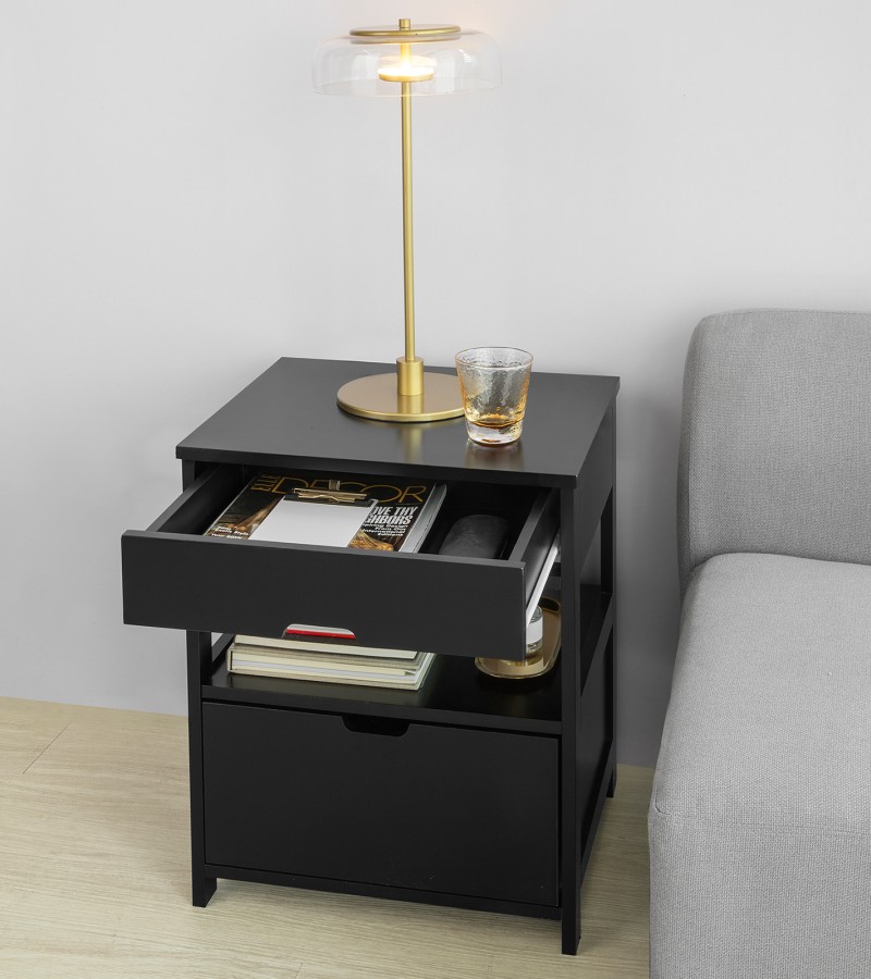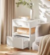 (SG STOCK)SoBuy®FRG258-W/SCH家用木边桌、边桌、带2个抽屉的茶几,白色、黑色