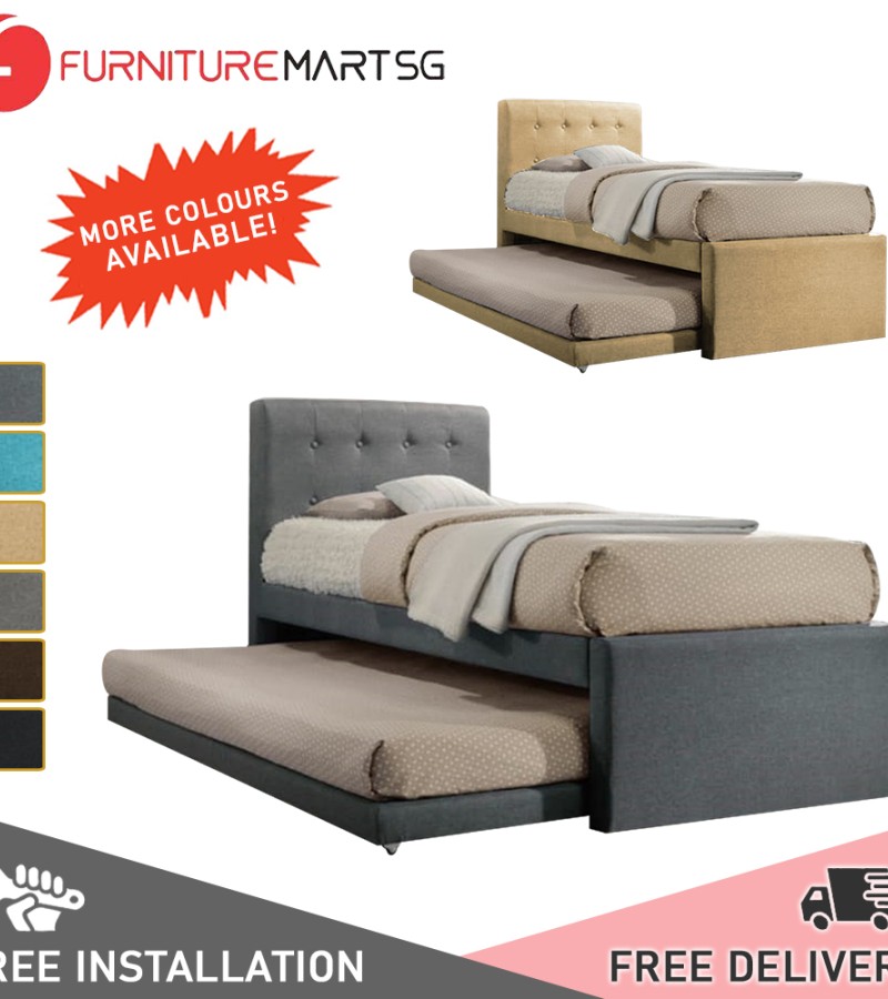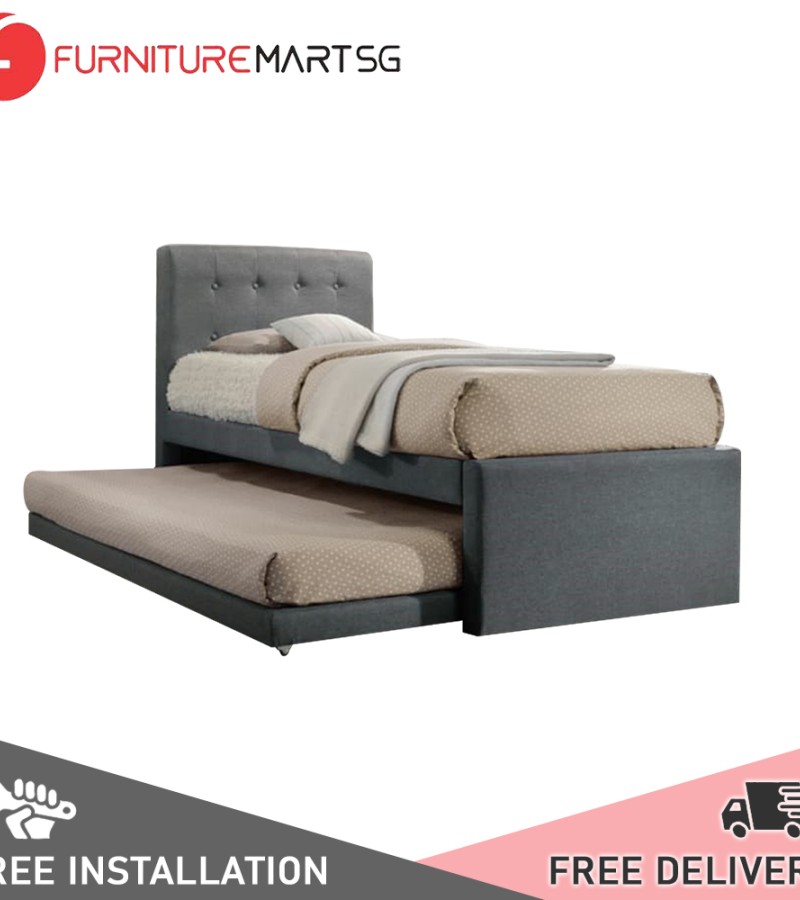 [FurnitureMartSG]Sadie单人和超单人拉出式床架面料和6色人造革