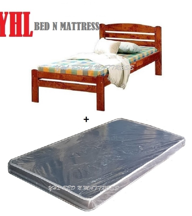 YHL Elsa Solid Wooden Single Bed Frame With Mattress