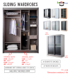 12 months manufacturer warranty included Material: Solid Plywood Sturdy aluminium door frame Strong aluminium hanging bar Durable full extension drawer slides Width: 4, 4.5, 5, 5.5, 6ft Dimensions: H77.5" X D23.5" Frame Colour: Available in 9 trendy colours Mirage 4 Door Design: Full Mirror + Metallic White (Glass) Please PM us if you are looking for height 2.4m sliding wardrobes.
