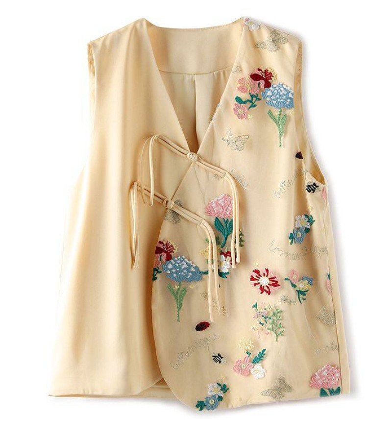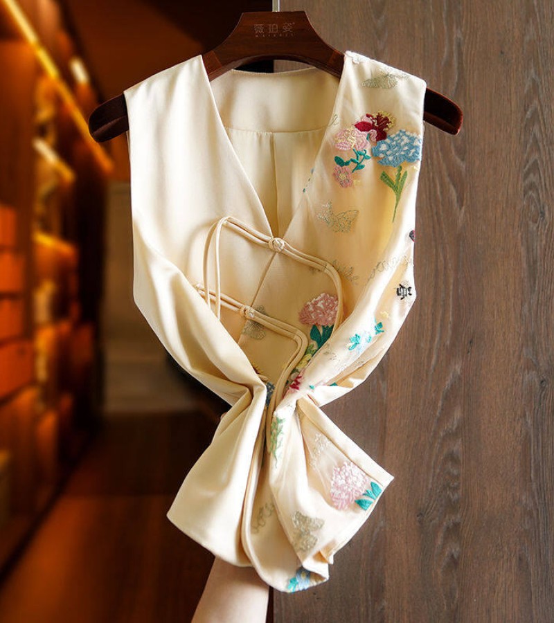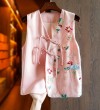 Joso杏粉色高级夏季感中式背心女式夏装原创设计网眼刺绣乡村风板扣上衣