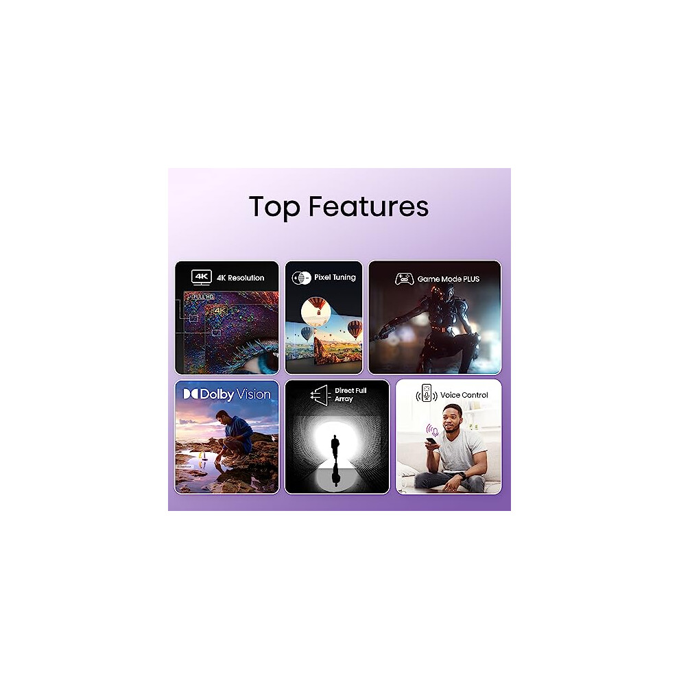 Hisense 55 Inch UHD VIDAA Smart TV 55E6KTUK - Dolby Vision, Pixel Tuning, Voice Remote, Share to TV, and Youtube, Freeview Play, Netflix and Disney Description