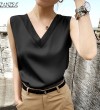 Celmia ZANZEA女式无袖缎面丝绸上衣衬衫纯色OL办公商务背心#11